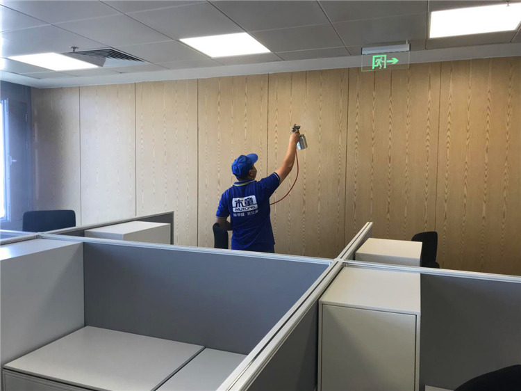 貴公司早在2015年與我司合作,對(duì)辦公室空氣污染進(jìn)行治理,今年公司擴(kuò)大規(guī)模,又新裝修一層辦公司,由于裝修比較高端,所用的板材數(shù)量較大,每間辦公室都是硬包式裝修,經(jīng)過CMA資質(zhì)公司檢測(cè)甲醛超標(biāo)嚴(yán)重,便再次請(qǐng)木童治理。